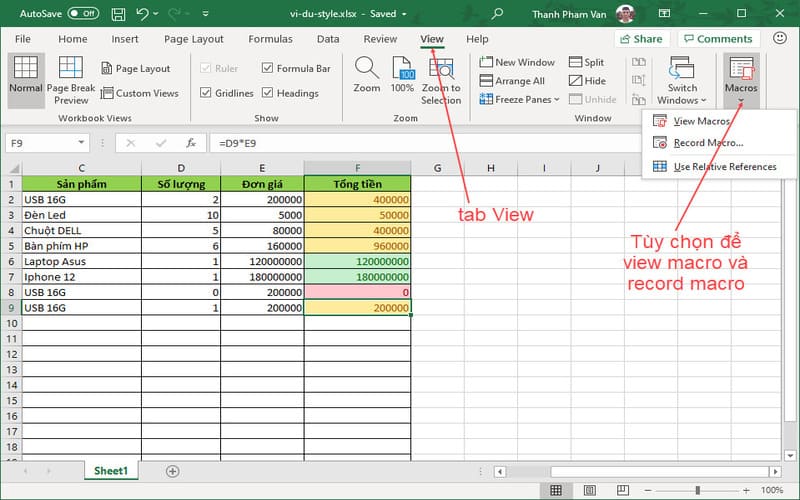 • Sử dụng Macro để tự động hóa các thao tác lặp đi lặp lại. Dù không cần biết lập trình, bạn vẫn có thể ghi Macro dễ dàng.